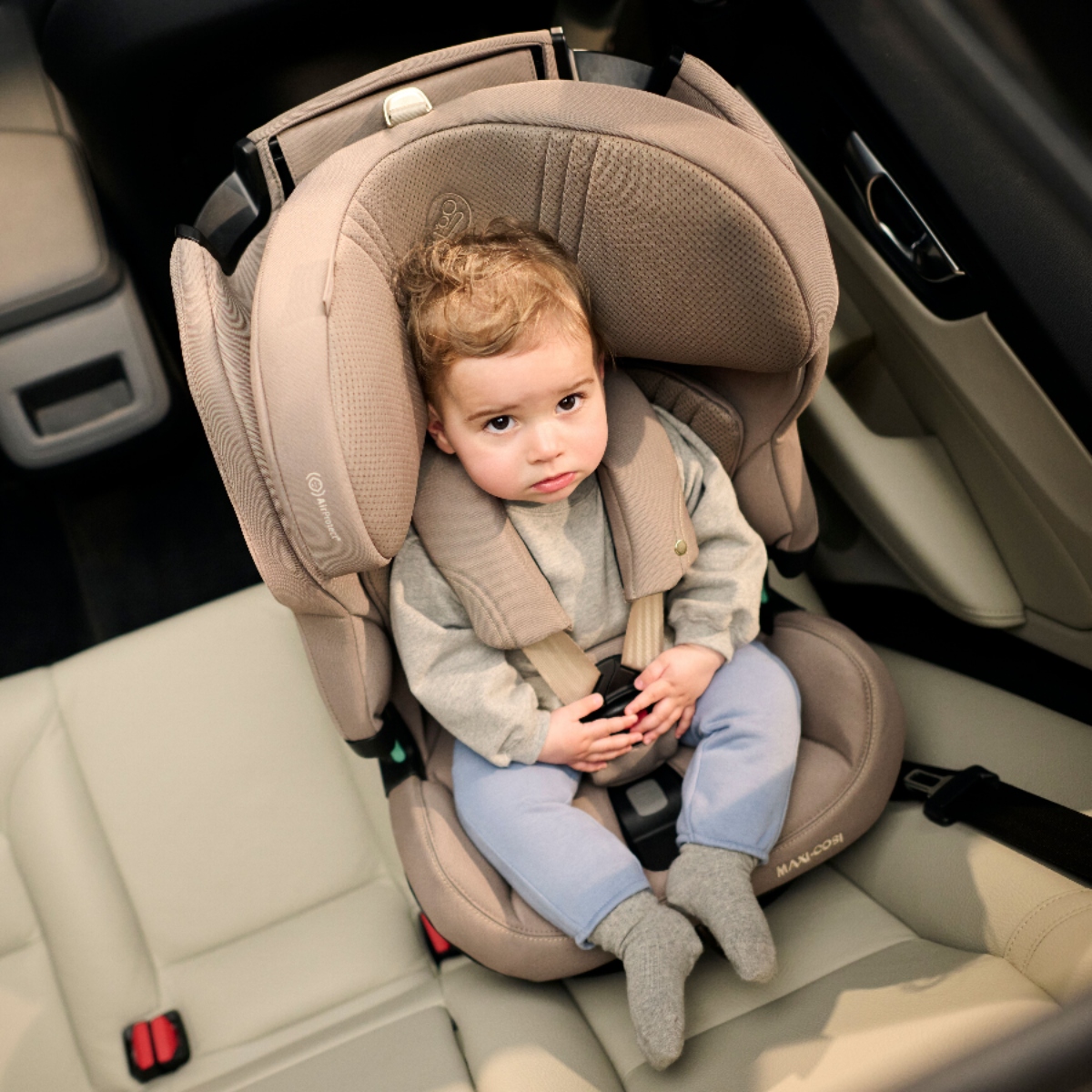 Safety is at the heart of the design. The protective shell meets the latest i-Size (R129/04) safety standards, while integrated G-CELL side impact protection absorbs and disperses forces in the event of a collision. An additional G-CELL bumper enhances side-impact protection, and patented AirProtect® safety cushions in the headrest help reduce the risk of head and neck injury. A secure 5-point harness offers optimal restraint during the early years.