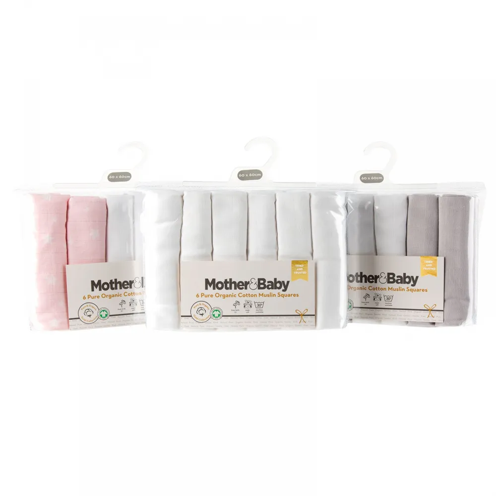 Mother&Baby 6 Pack Cotton Muslins – Pink Star