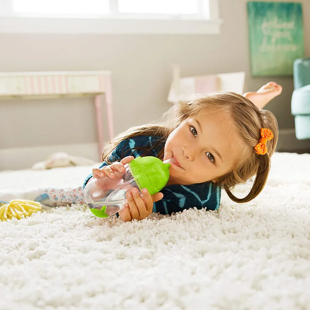 The Munchkin 10oz Tip and Sip Cup – Green is fantastic for any child. This cup is tilted like normally but dispenses liquid through a straw at any angle.