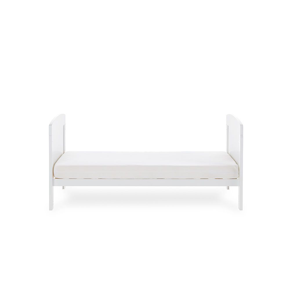 The Obaby Grace Cot Bed & Fibre Mattress | White provides a stylish, safe, and comfortable sleeping environment for your child. With its durable design, adaptable features, and high-quality mattress, this cot bed set offers excellent value and long-lasting use.