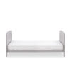 The Grace Mini cot bed features open slatted sides, allowing you to keep a close eye on your baby. With an adjustable three-position mattress base, the cot adapts as your little one grows, offering extra security. When the time comes, it seamlessly transforms into a stylish toddler bed by removing the fixed sides and splitting the end panels. This long-lasting design ensures a smooth transition from cot to bed, making it a great investment.