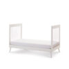 The Obaby Maya Cot Bed – White Acrylic offers a three-height adjustable mattress base, allowing parents to place their baby down with ease while minimising back strain. The durable acrylic spindles are non-toxic and fully recyclable, providing a modern twist on a classic cot design while offering visibility to keep an eye on your little one. As your child grows, the cot bed effortlessly transitions into a toddler bed with the included safety rail, ensuring a smooth and secure transition to independent sleeping.