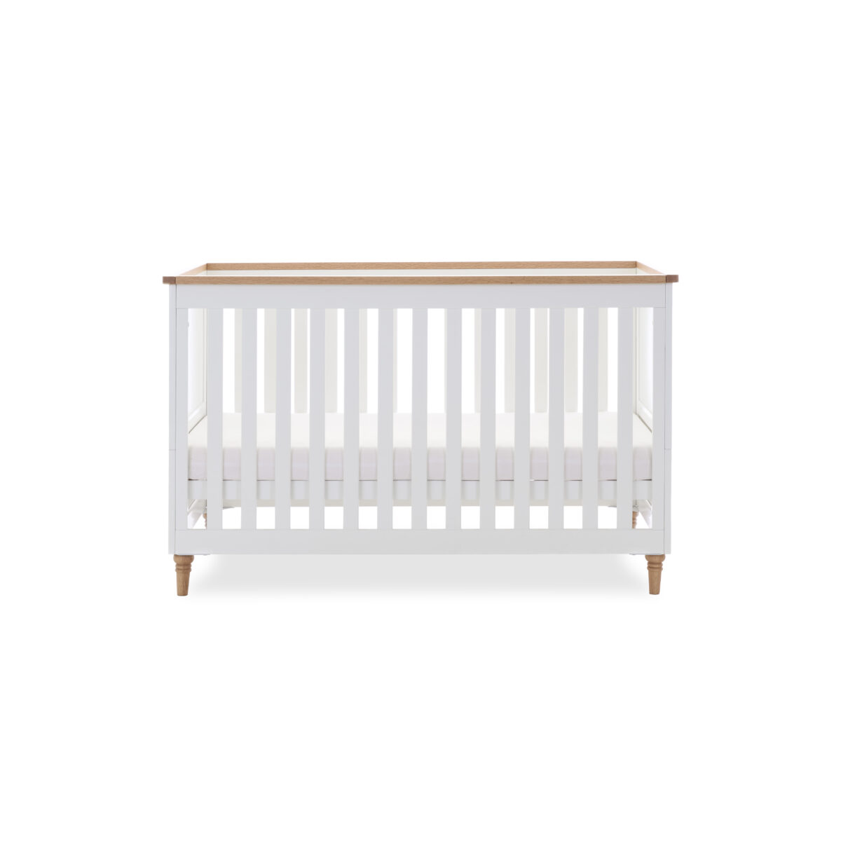 Featuring solid oak trims and delicately hand-crafted feet, the Orla Cot Bed brings a touch of sophistication and warmth to your baby’s room. The soft cotton white finish, combined with natural wood accents, creates a serene and calming atmosphere—ideal for peaceful nights and playful mornings.