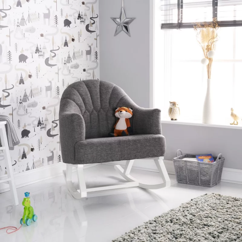 Obaby Round Back Rocking Chair – White with Grey Cushion