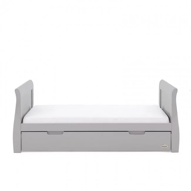 The Obaby Stamford Classic Sleigh 3 Piece Nursery Furniture Set with Cot Bed, Changing Unit & Wardrobe – Warm Grey is the perfect blend of style, practicality, and longevity. With its elegant sleigh design and ample storage, this set ensures that your nursery remains organised and stylish as your child grows.