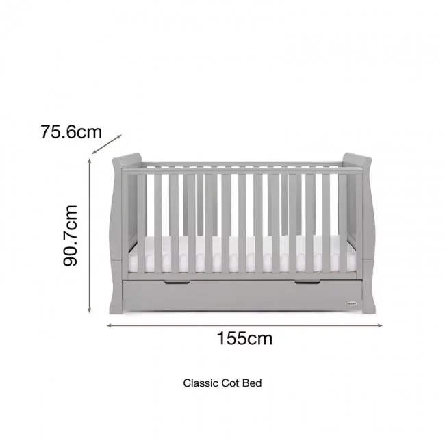 The Obaby Stamford Classic Sleigh 3 Piece Nursery Furniture Set with Cot Bed, Changing Unit & Wardrobe – Warm Grey combines timeless elegance with practical functionality, creating a stylish and versatile nursery space. With its signature sleigh design, this furniture set offers a traditional aesthetic with a modern finish, ensuring it complements any nursery décor.