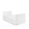 At the heart of the range is the beautiful Stamford Classic sleigh cot bed. Teething rails protect your child’s delicate teeth and the slatted sides ensure you can watch over your little one during their most peaceful times. The Stamford Classic offers an adjustable mattress base that can be lowered as your child grows to ensure your little one is safe and secure at all times. Once your child is old enough, the Stamford Classic can be transformed into a stylish toddler bed to provide the perfect night’s sleep up until they are approximately four years old. Requires an Obaby 140 x 70cm mattress. Also includes a generous 70L capacity underdrawer for extra storage space.