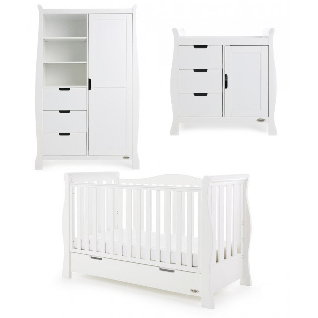 The Obaby Stamford Luxe 3 Piece Room Set in White offers families the perfect combination of style, quality, and practicality. The Obaby Stamford Luxe Cot Bed is top of the range. Its deluxe, hand-shaped end scrolls flow perfectly into the curved rear side rail, creating a unique look that truly sets the Luxe apart from any other sleigh cot beds.