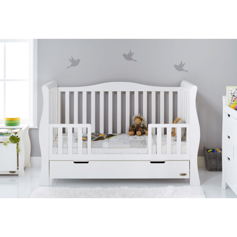 Available in a range of stylish finishes, the Obaby Stamford Luxe sleigh cot bed is the perfect addition to any nursery and coordinates flawlessly with the rest of the Stamford range.