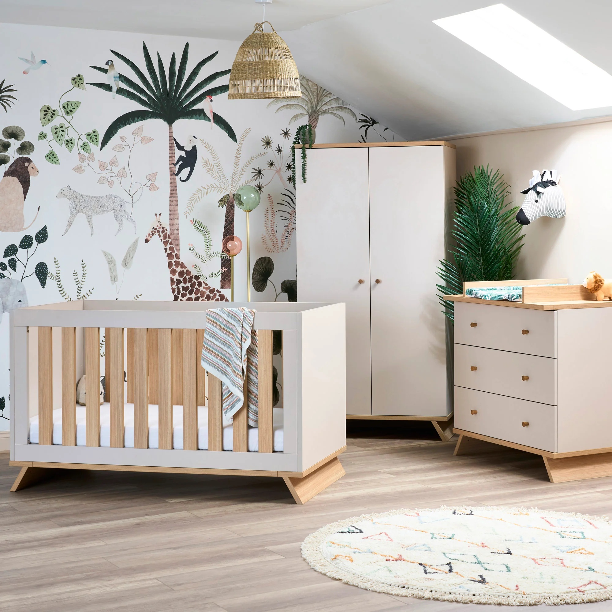 The Thea nursery collection is designed to grow with a family, blending timeless elegance with everyday practicality. Built with care and created to last, this beautifully coordinated set features a sleek two-tone design that brings warmth and style to any nursery.