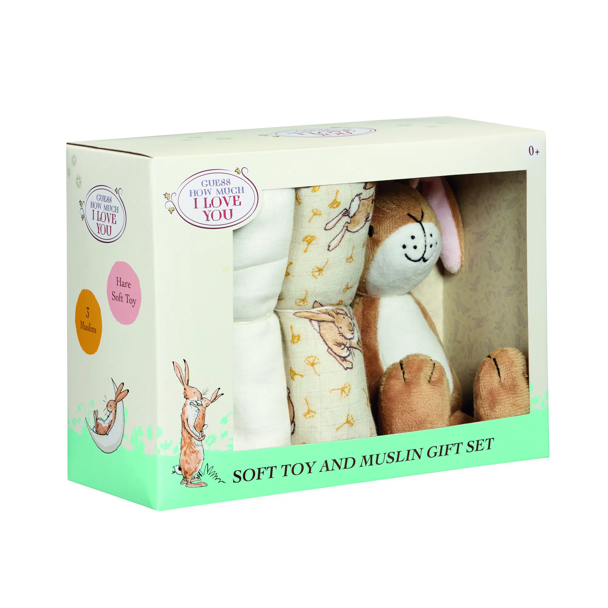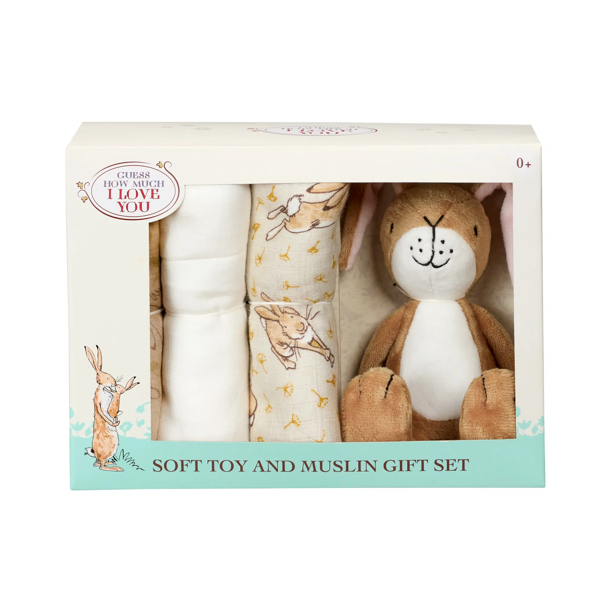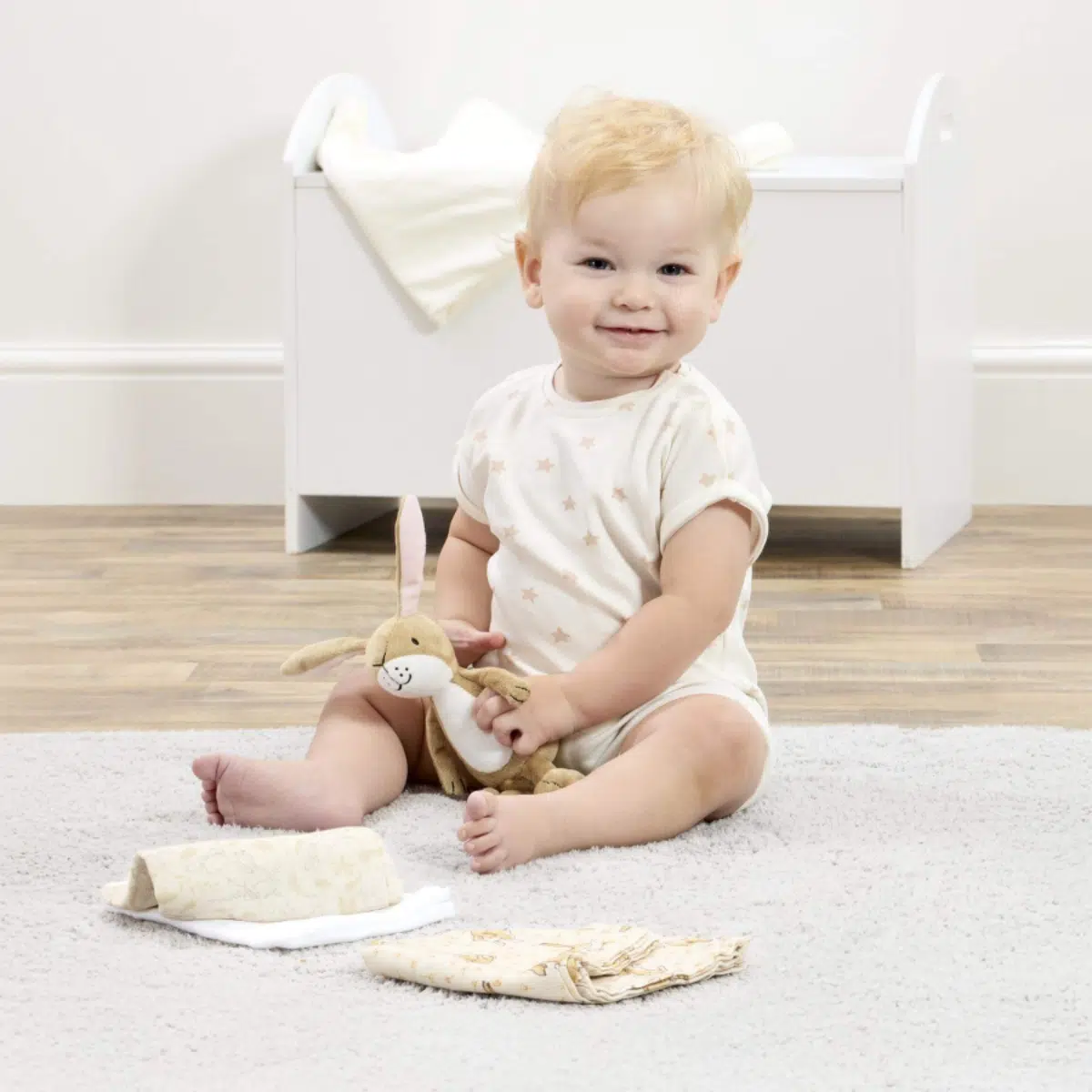 Wrap your little one in warmth and sweetness with the Guess How Much I Love You Soft Toy & Muslin Set, a heart warming gift inspired by the beloved children’s book. Featuring the adorable Little Nutbrown Hare, this set brings the magic of A.A. Milne’s classic story to life. The set includes a snuggly Little Nutbrown Hare plush toy and three soft, 100% cotton muslins, each decorated with delightful illustrations from the tale.