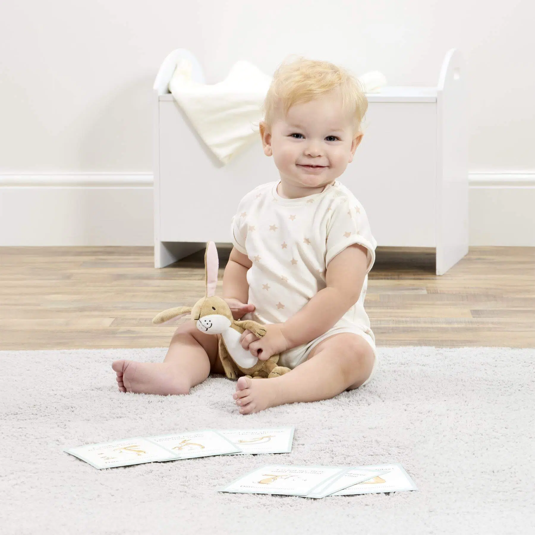 Straight from the heart warming Guess How Much I Love You storybook, meet the adorable Little Nutbrown Hare soft toy, paired with 12 beautifully crafted milestone cards. Each card captures precious moments of your baby’s growth, making this gift a keepsake to cherish for years to come.