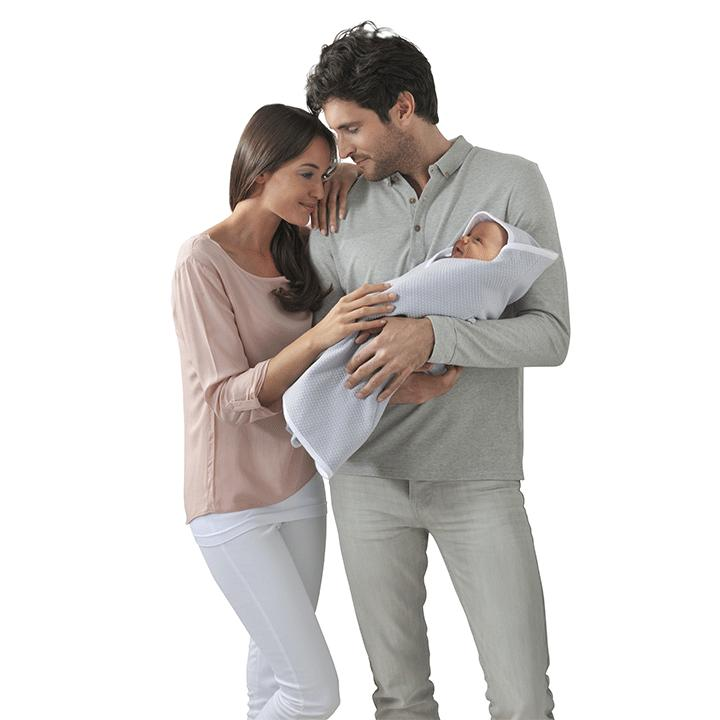 - Leg and hood-shaped cut-outs for easy wrapping around baby