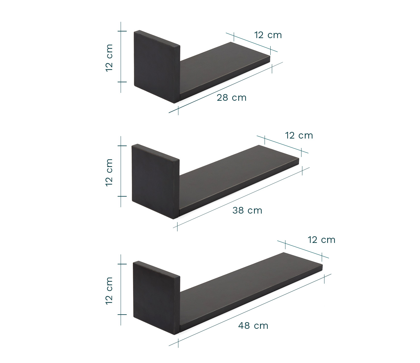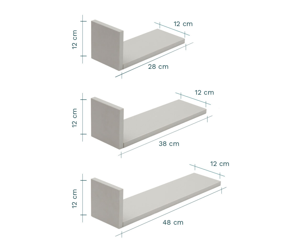 Medium Shelf Dimensions: 12 x 38 x 12 cm