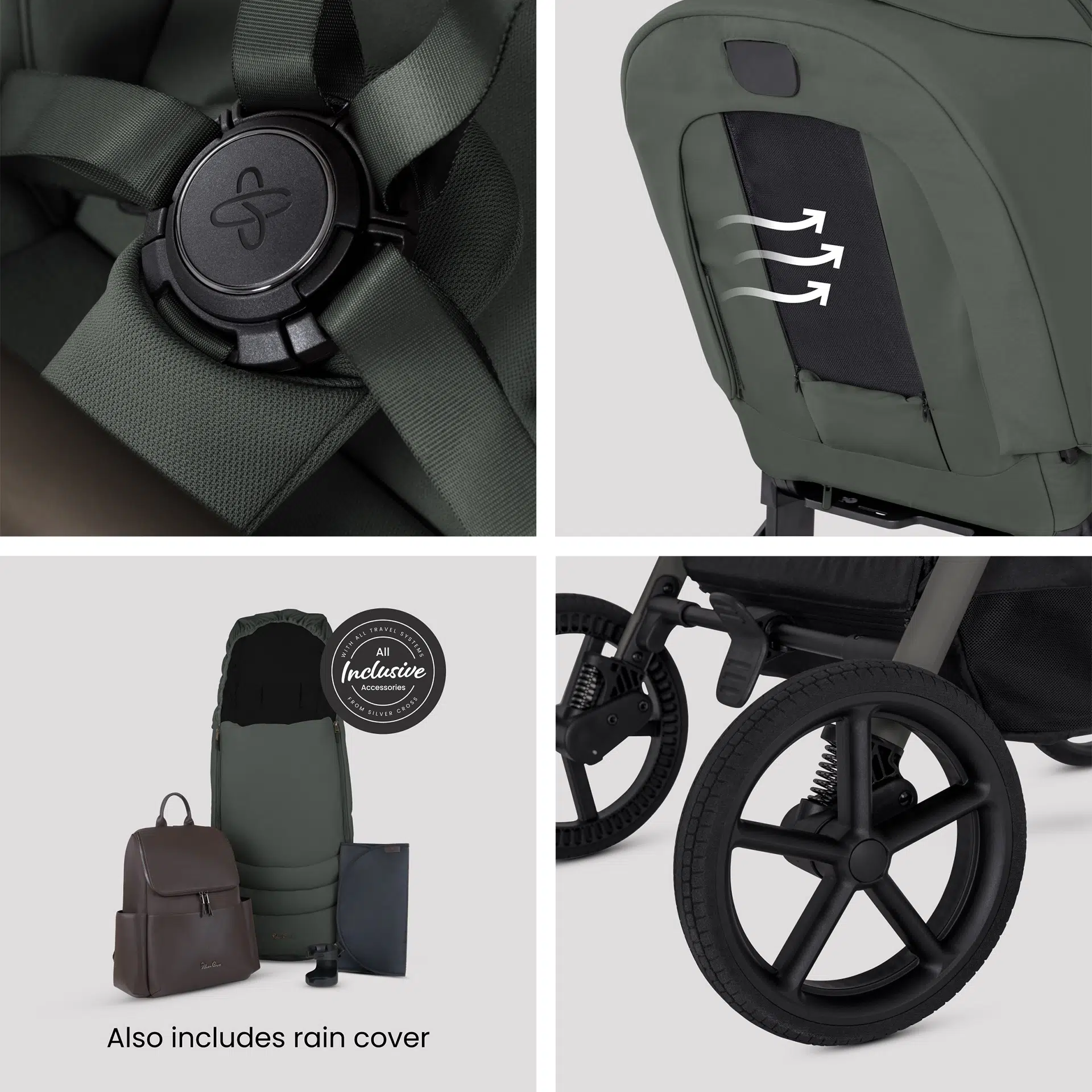 Convenient storage: A supersized 10kg storage basket for all the essentials and easy-to-use accessories like a changing bag, footmuff, and cup holder.