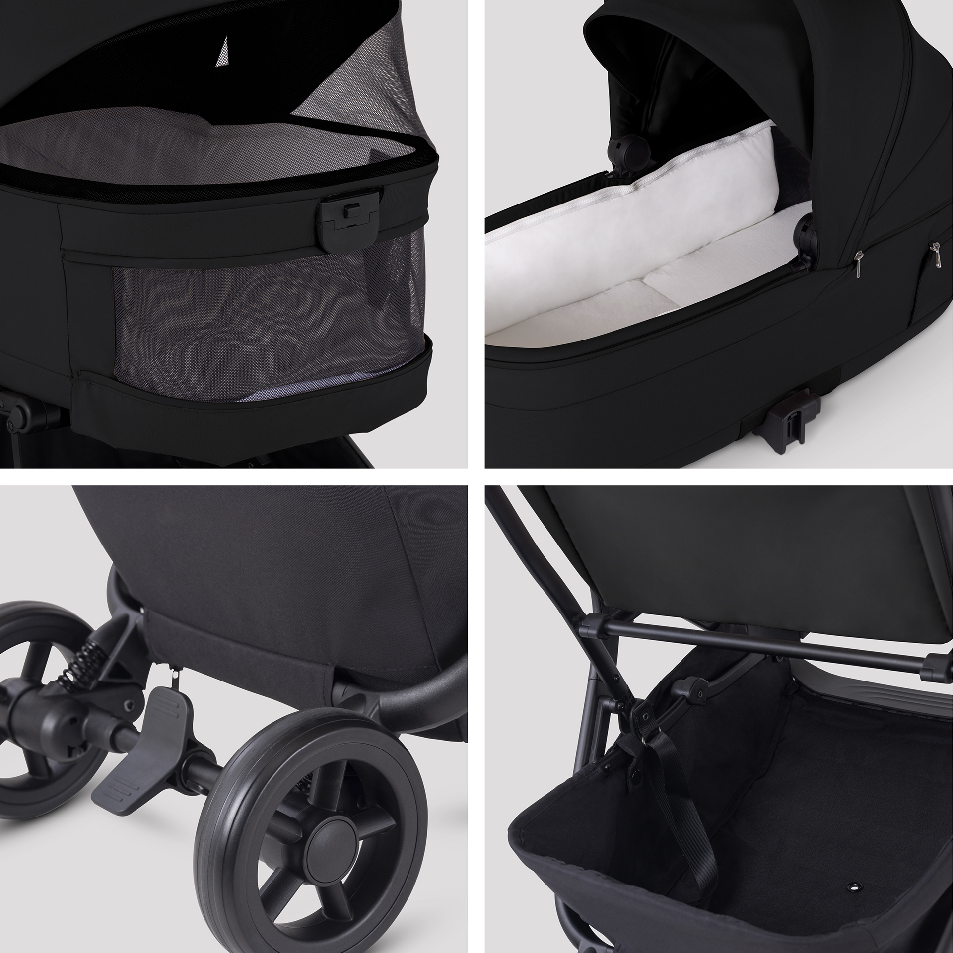 • Folding carrycot with bamboo mattress and panoramic mesh ventilation