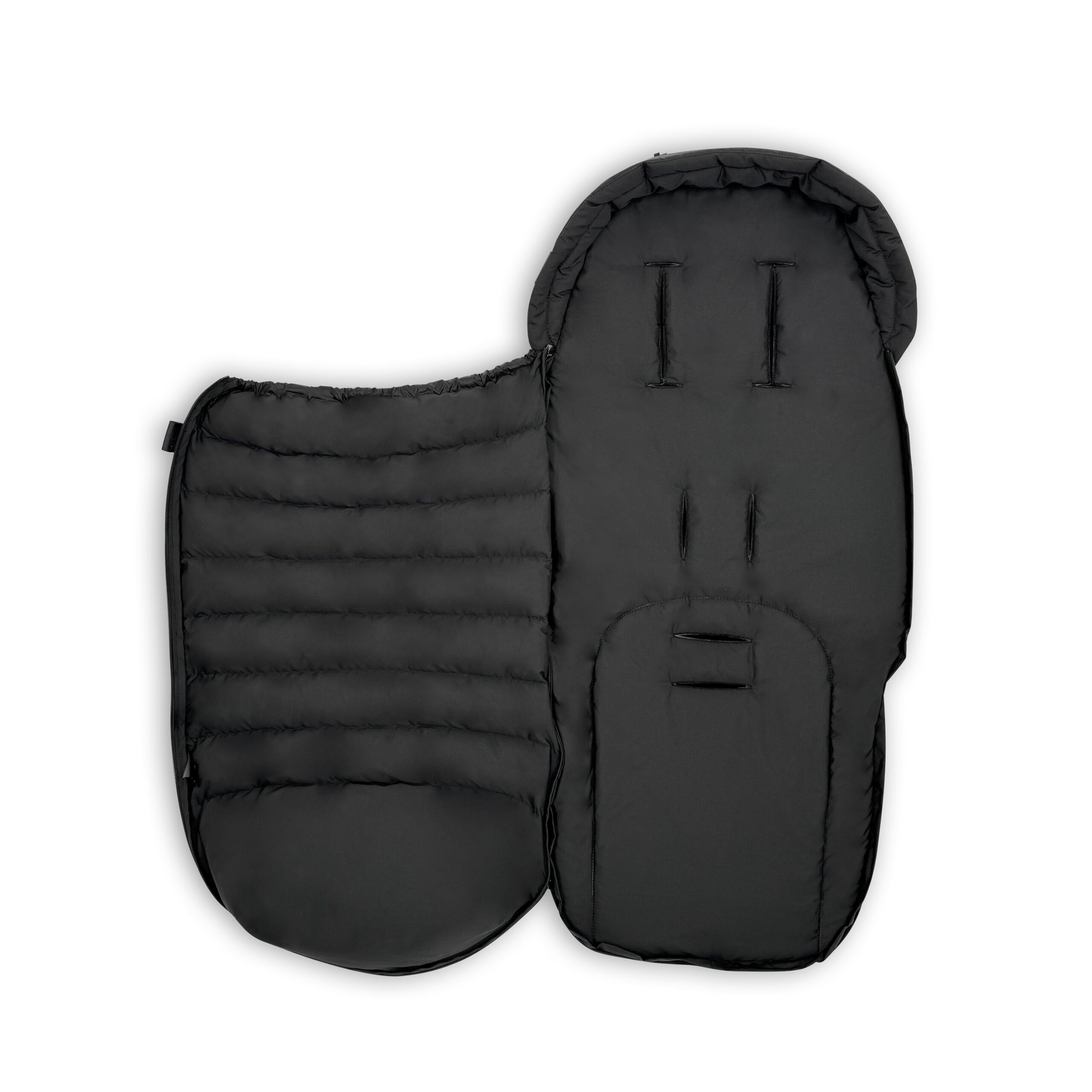 Featuring a lightweight, water-resistant outer fabric and a puffer-style, down-like filling, this footmuff provides excellent insulation on colder days without feeling bulky. When temperatures rise, the detachable apron can be removed, leaving behind a soft, padded seat liner that adds comfort for milder weather.