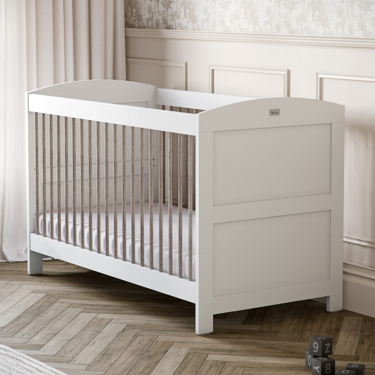 The Valencia cot bed is designed to accommodate your child’s growth, from their first night at home through to toddlerhood. With three adjustable mattress heights, the cot bed is perfect for newborns at the highest setting and can be lowered as your baby begins to sit, roll, and stand. When your child no longer needs the cot railings, they can be easily removed, transforming the cot into a toddler bed. The cot bed is compatible with the Silver Cross TrueFit™ Mattress collection, ensuring a perfect fit for your baby’s safety and comfort.