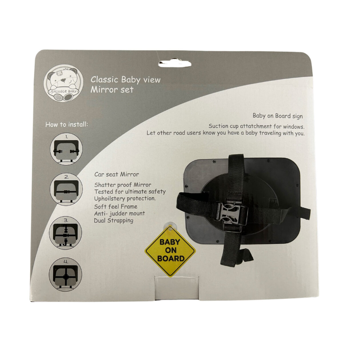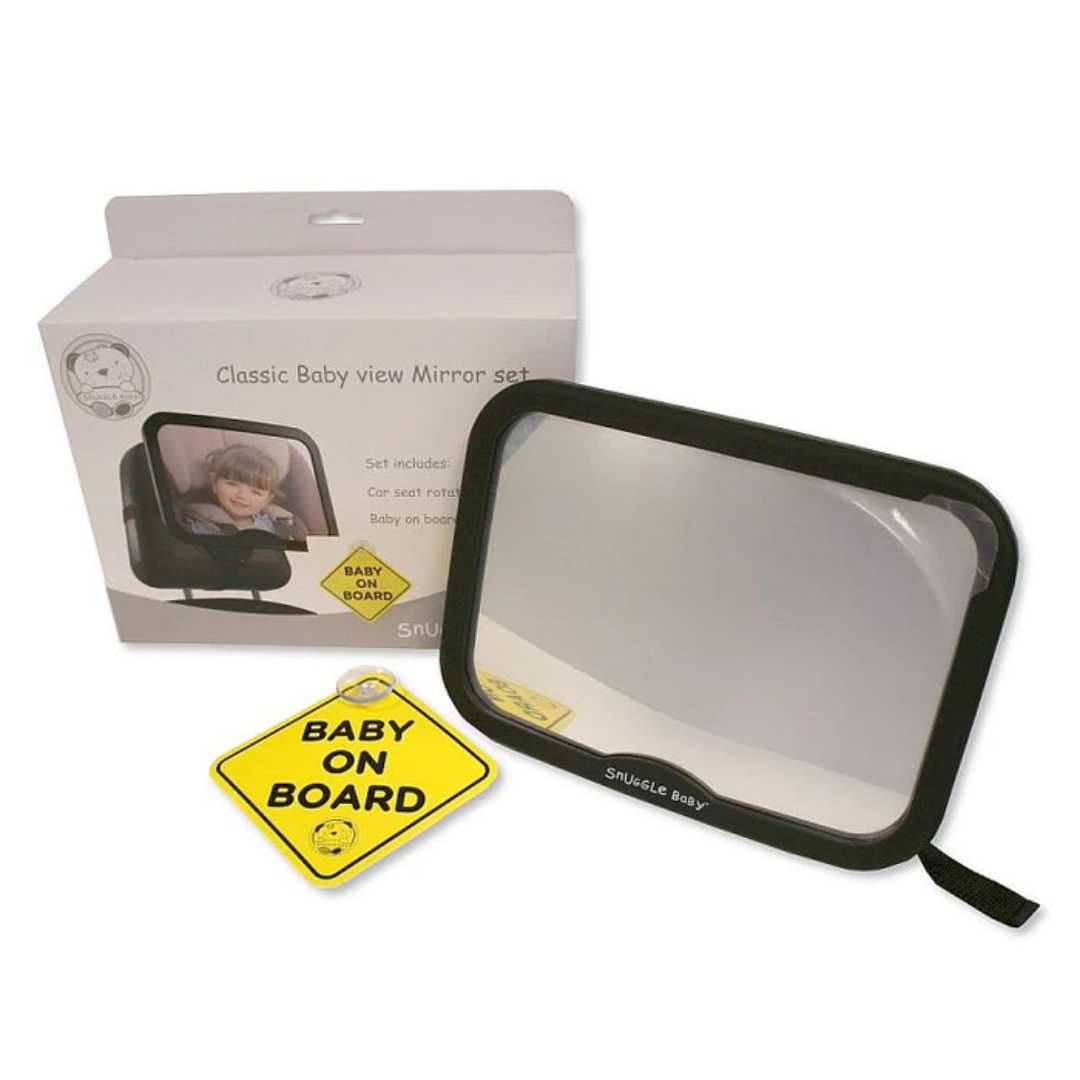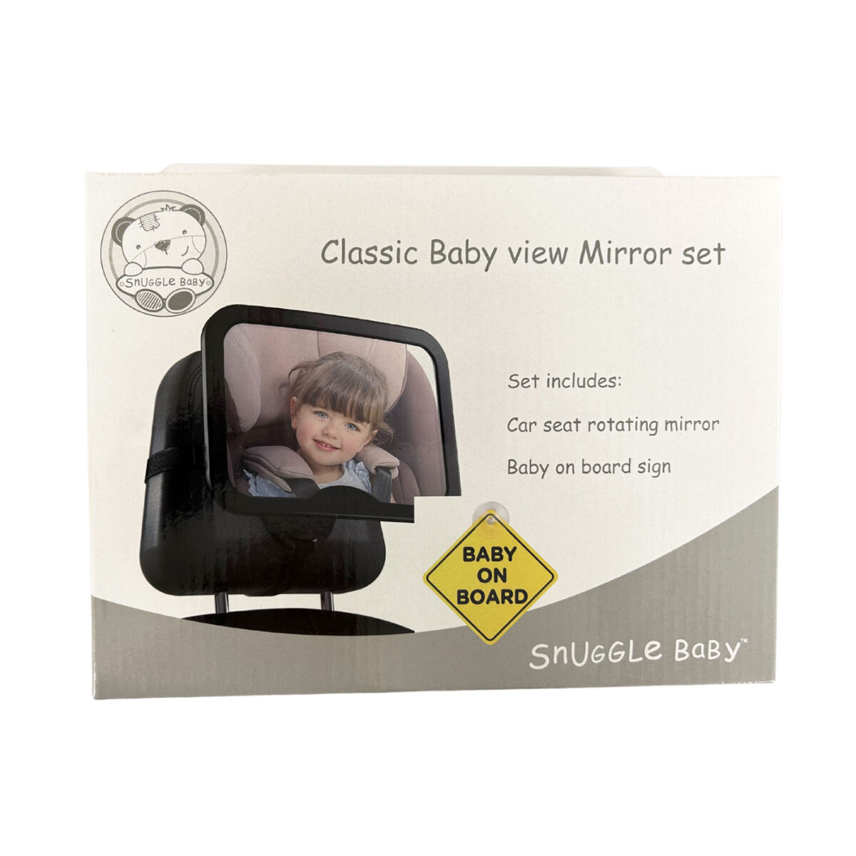 The Snuggle Baby View Mirror Set is a must-have for parents with young children. This set includes a car seat rotating mirror and a baby on board sign, providing peace of mind and safety while driving with your little one.