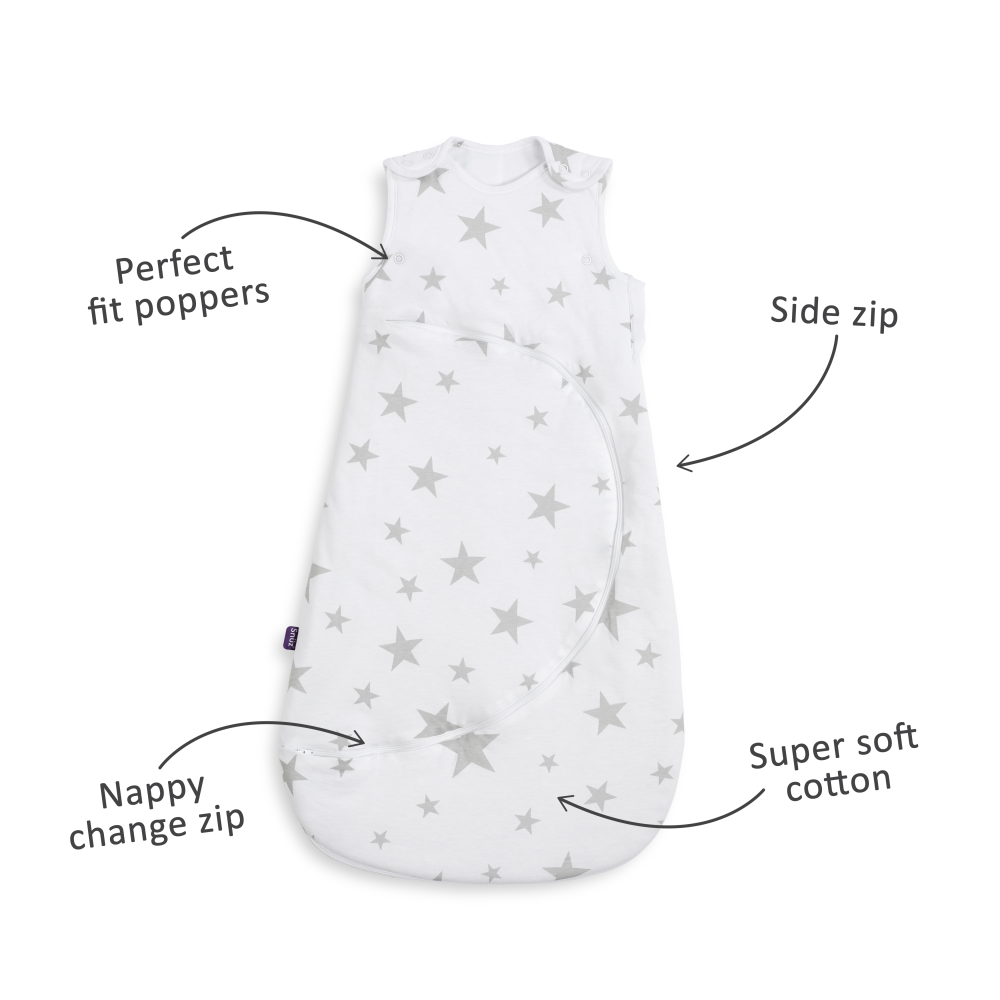 The 2.5 Tog rating ensures that your baby will stay comfortably warm throughout the night, while the cleverly designed nappy change zip allows for easy night-time changes with minimal disturbance. This ensures your baby remains calm and comfortable, helping them (and you) get a great night’s sleep.