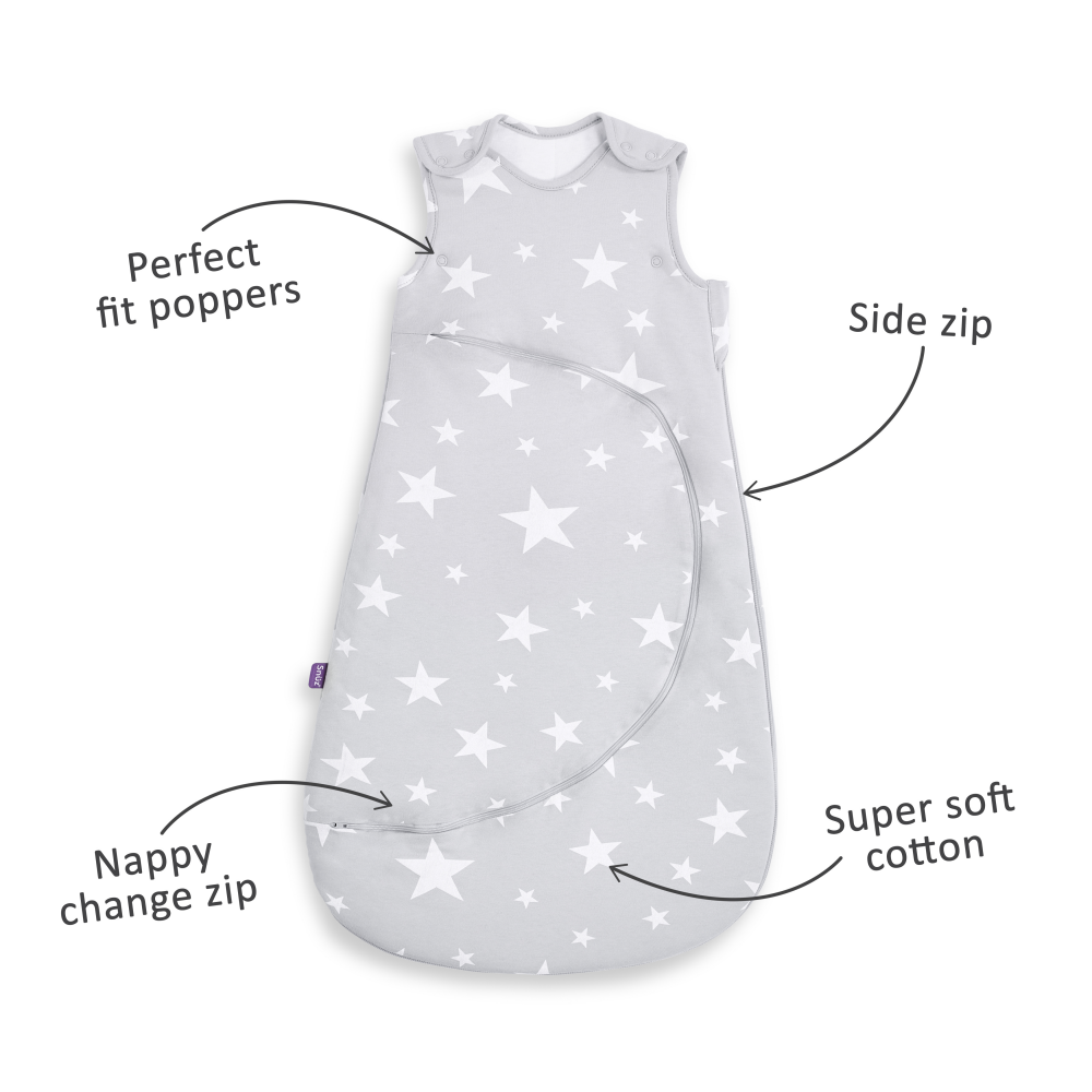- 1 x SnuzPouch Sleeping Bag, 2.5 Tog – White Star, 0-6M