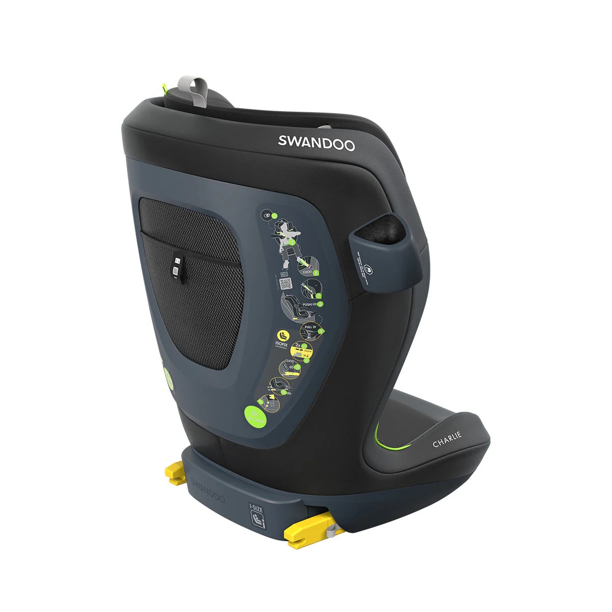 The Swandoo Charlie i-Size High Back Booster, Chia Black is designed for children who are ready to move into the next stage of travel, combining advanced safety credentials with adaptable comfort that lasts throughout the booster years. Created to grow with your child, it delivers reassurance for parents and independence for older children without compromising protection.