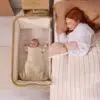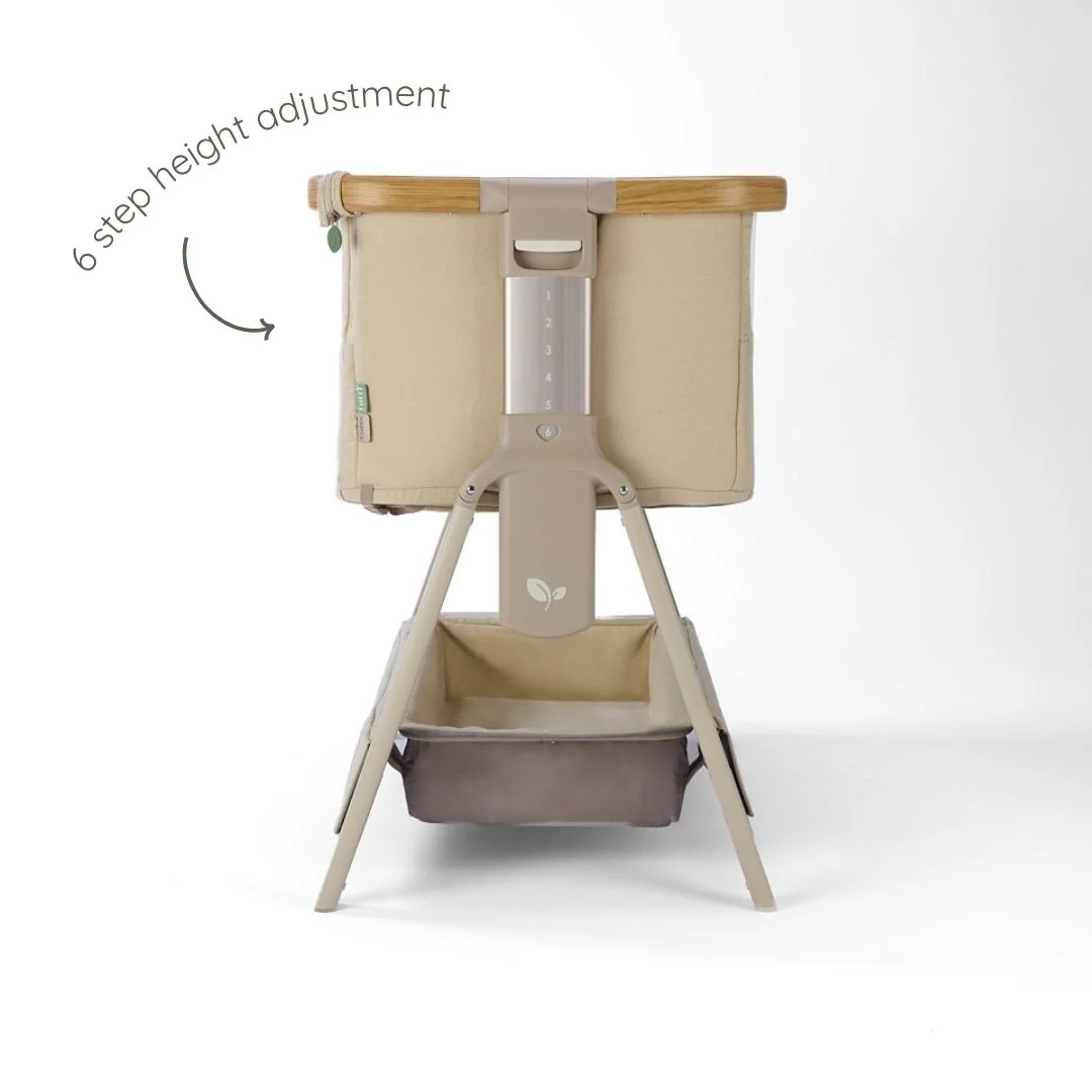 This crib folds open in just 30 seconds, making it the perfect solution for both home and travel. With six adjustable mattress positions and an incline option, it supports your baby’s comfort. Rocking bars and wheels make everyday use even easier, and the deeper under-crib storage tray keeps essentials close at hand. When it’s time to move, the CoZee Air 2 folds flat and comes with a travel bag, providing added convenience. Designed for closeness and peace of mind during those early months, the CoZee Air 2 offers both practicality and elegance.