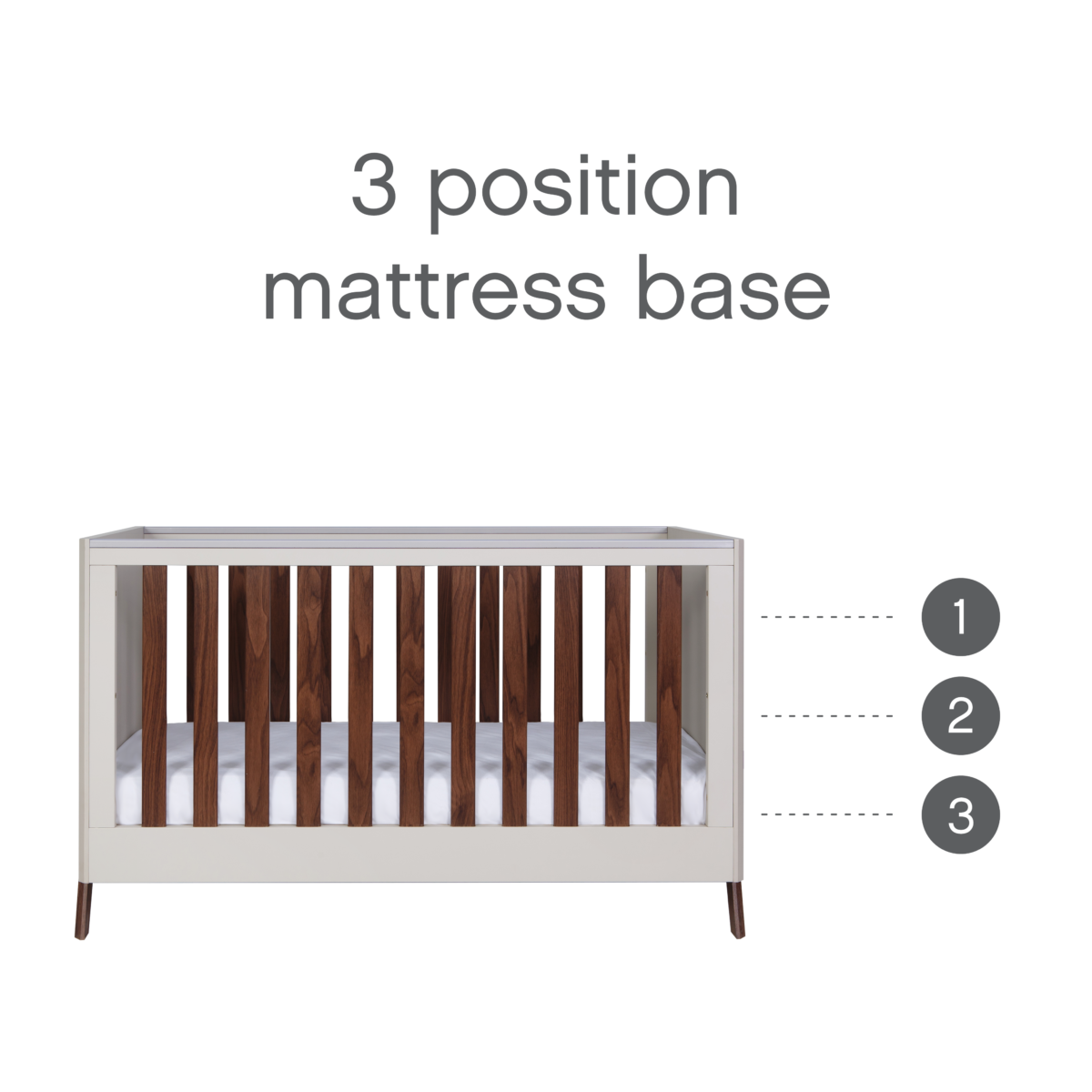 - Cot Bed Base Height Positions: