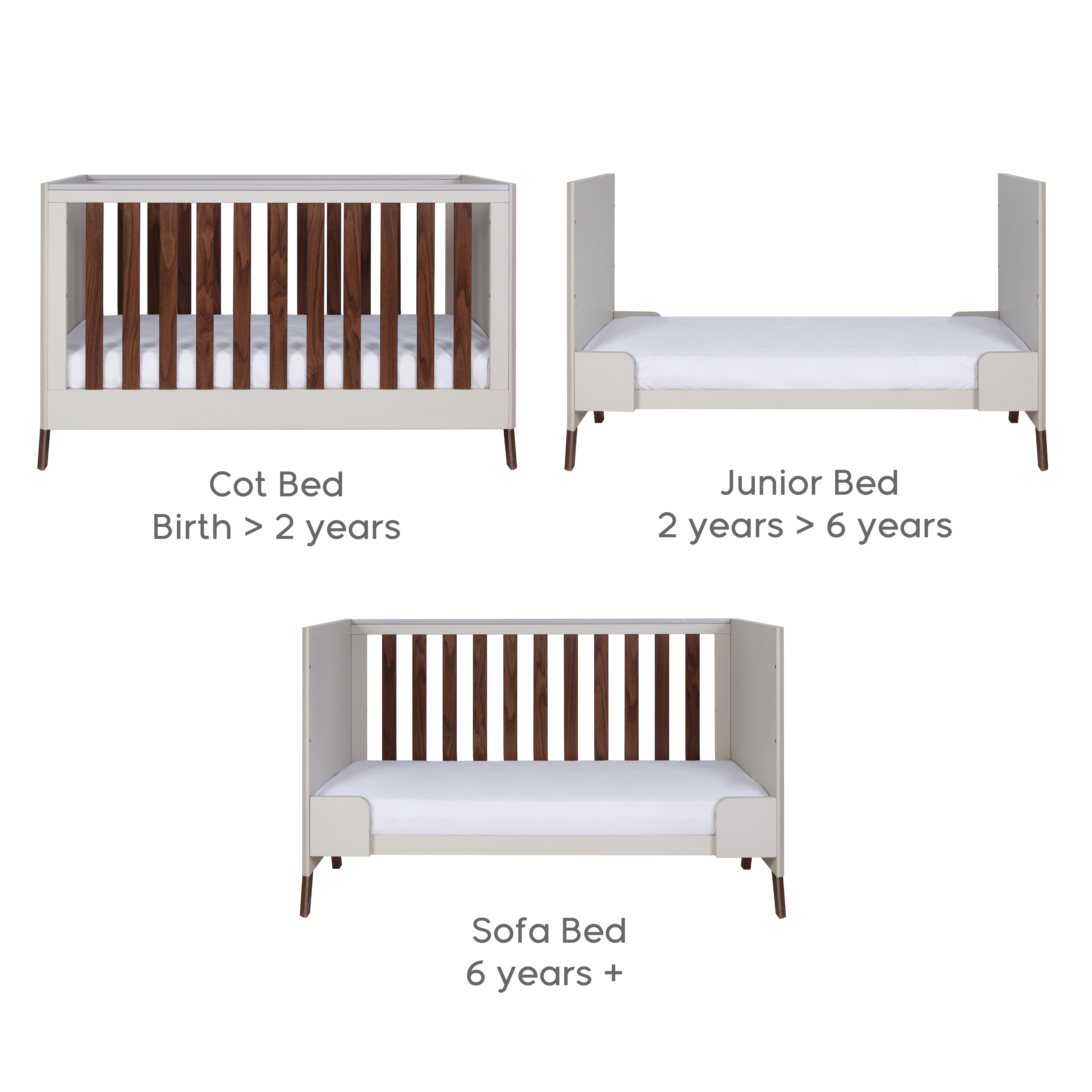 - Converts into a toddler bed or sofa/day bed