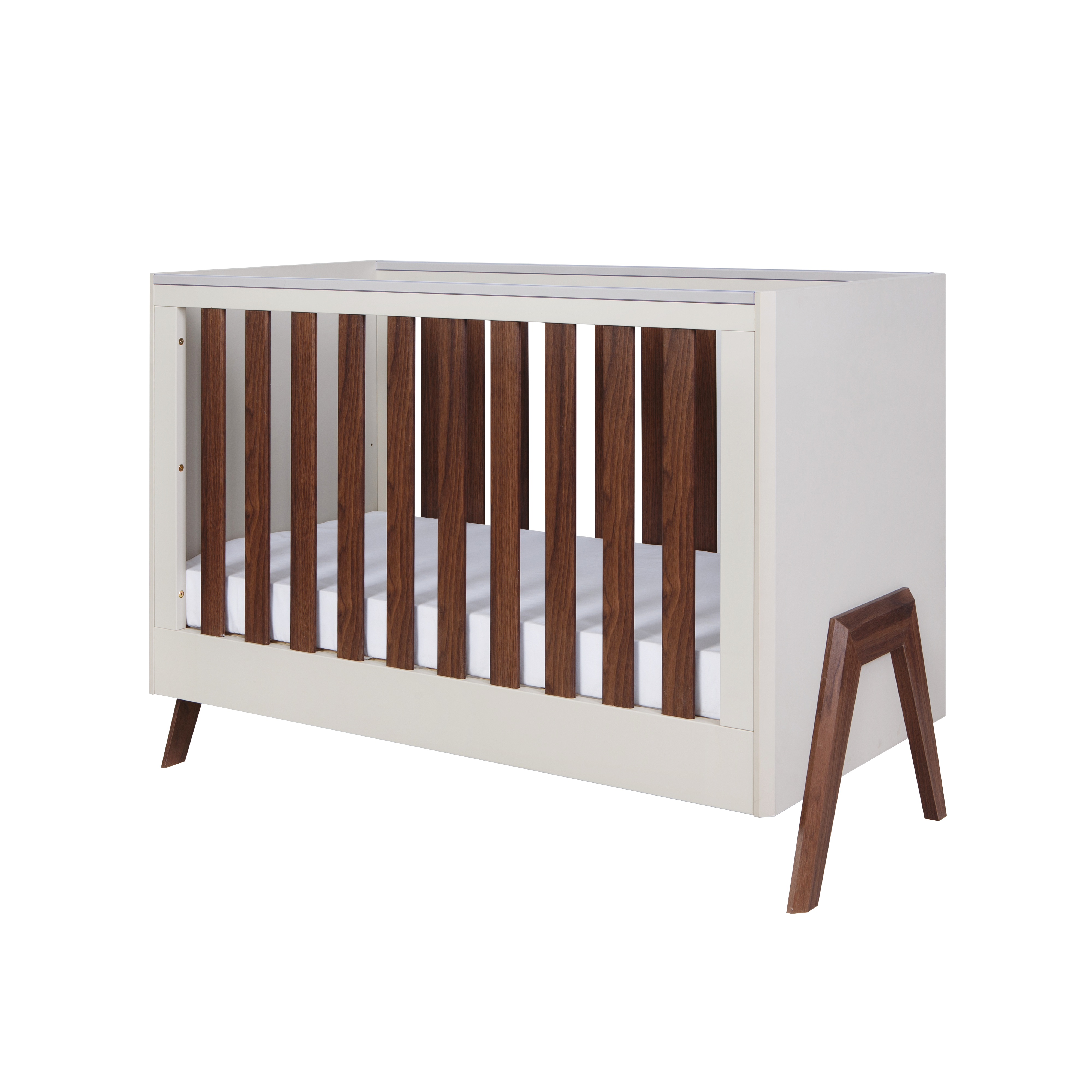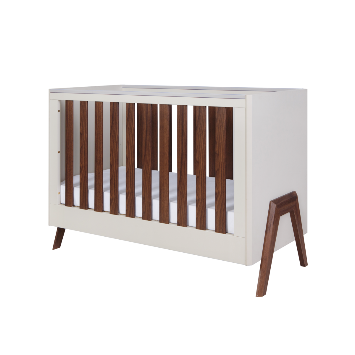 The Tutti Bambini Fuori Mini Cot Bed – Warm Walnut/White Sand is a Scandinavian-inspired blend of modern simplicity and functionality. With exposed legs and a sleek appearance, this cot bed is an ideal choice for those who desire a clean, contemporary nursery look. Practical and versatile, this space-saving cot has three mattress height positions and effortlessly converts into a toddler bed or a sofa.
