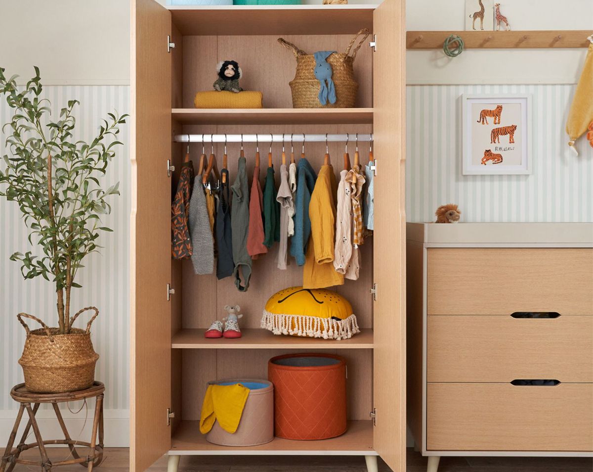 The Hygge Cot Bed is designed to grow with your child, featuring three adjustable mattress heights to suit every stage of development. It transitions effortlessly into a toddler bed or a sofa/day bed, extending its usability and providing excellent value for families. Organisation is made simple with the chest changer, which boasts three spacious drawers for clothes, toys, or bedding. The wardrobe offers additional versatile storage, making it easy to keep the nursery neat and tidy. Together, the pieces in the Hygge 3 Piece Room Set ensure a well-organised and harmonious space for your baby’s first years.