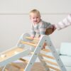 This beautifully designed Pikler climbing frame encourages children to develop their motor skills, balance, and confidence in a safe and stimulating environment. With its stylish Mushroom colour and sturdy construction, it seamlessly blends into any playroom or nursery while offering endless play possibilities. The Tutti Bambini Scala Montessori 3 in 1 Pikler Climbing Frame with Climbing Wall – Sea Mist is the perfect choice for parents looking to inspire active, independent learning through play.
