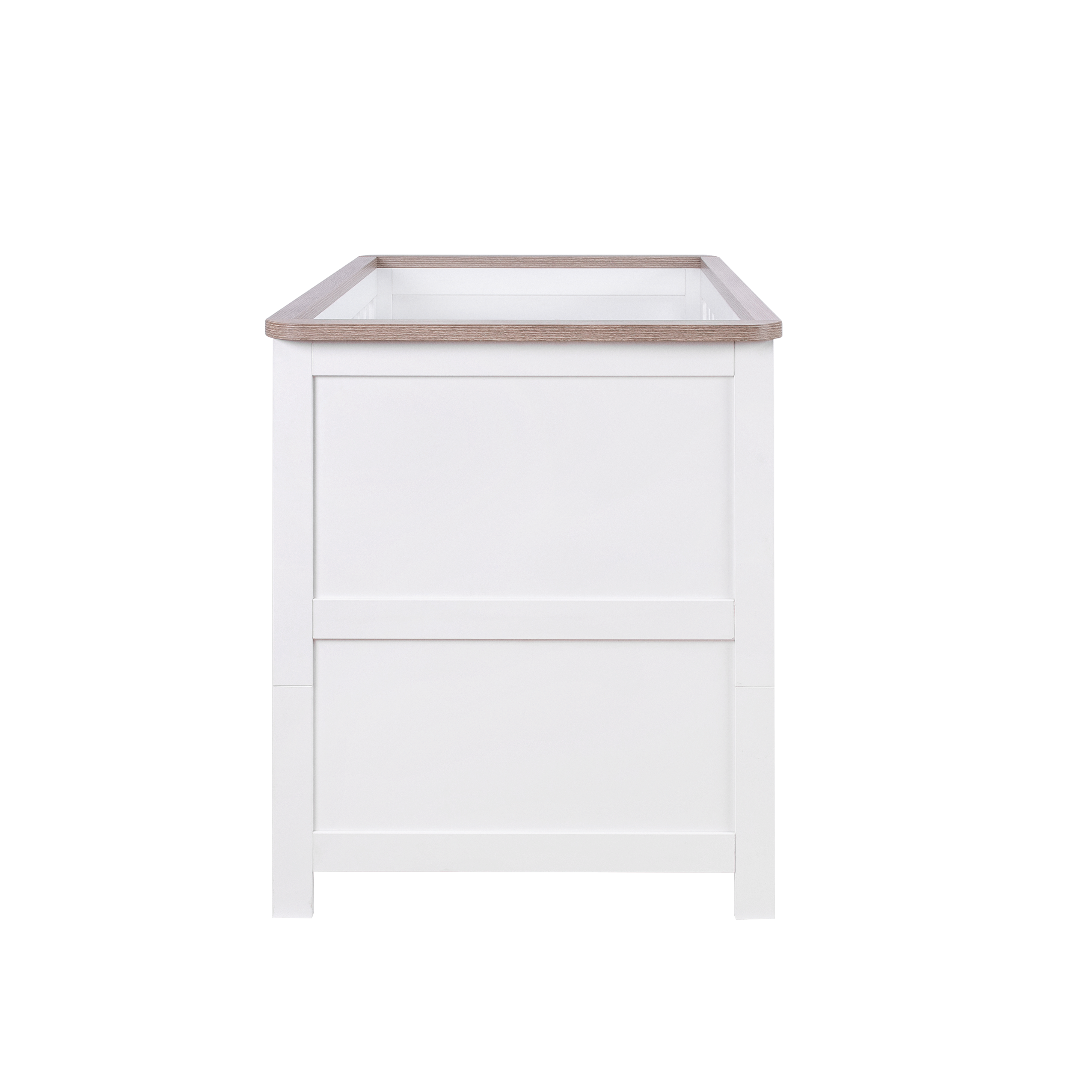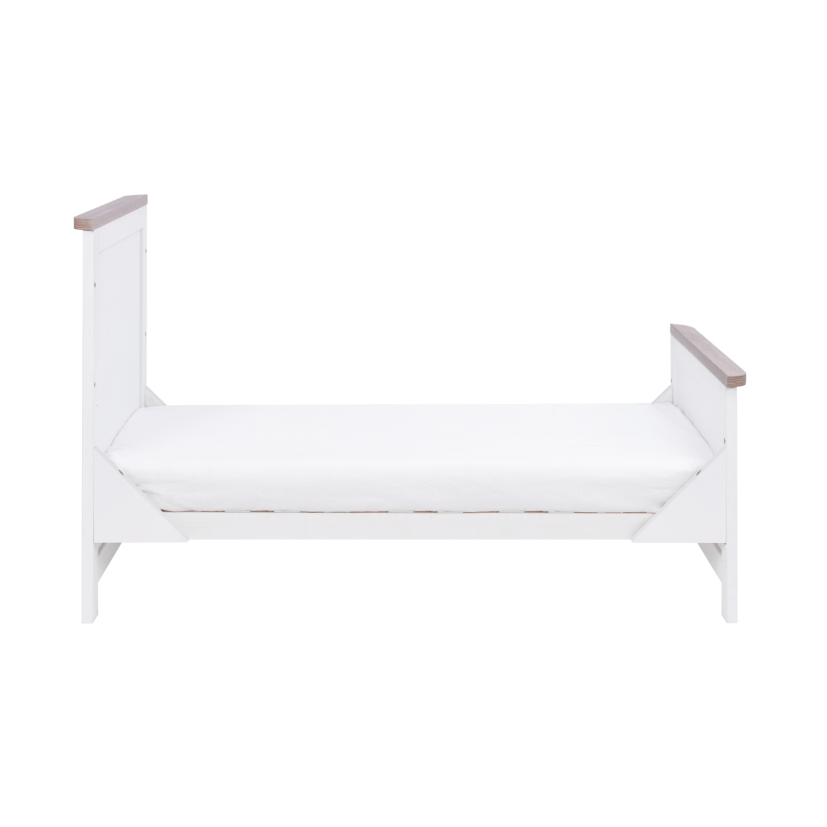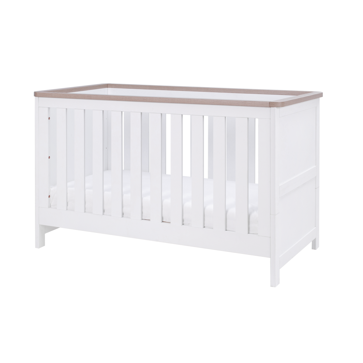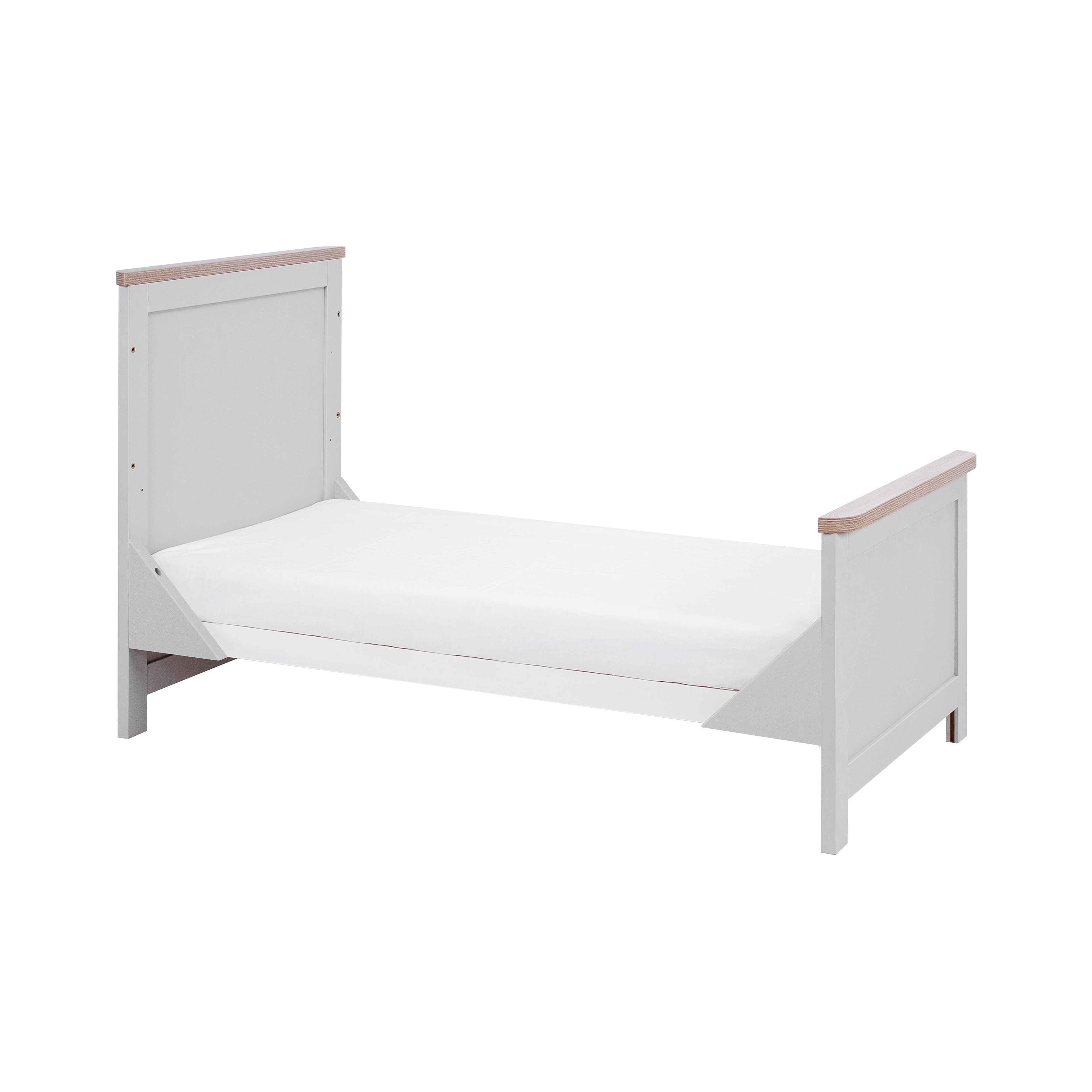 The Verona cot bed is designed in a beautiful, clean-lined traditional style in both soft Dove Grey & Oak or White & Oak. Convertible to a toddler bed and sofa, this cot bed is made to grow with your little one.
