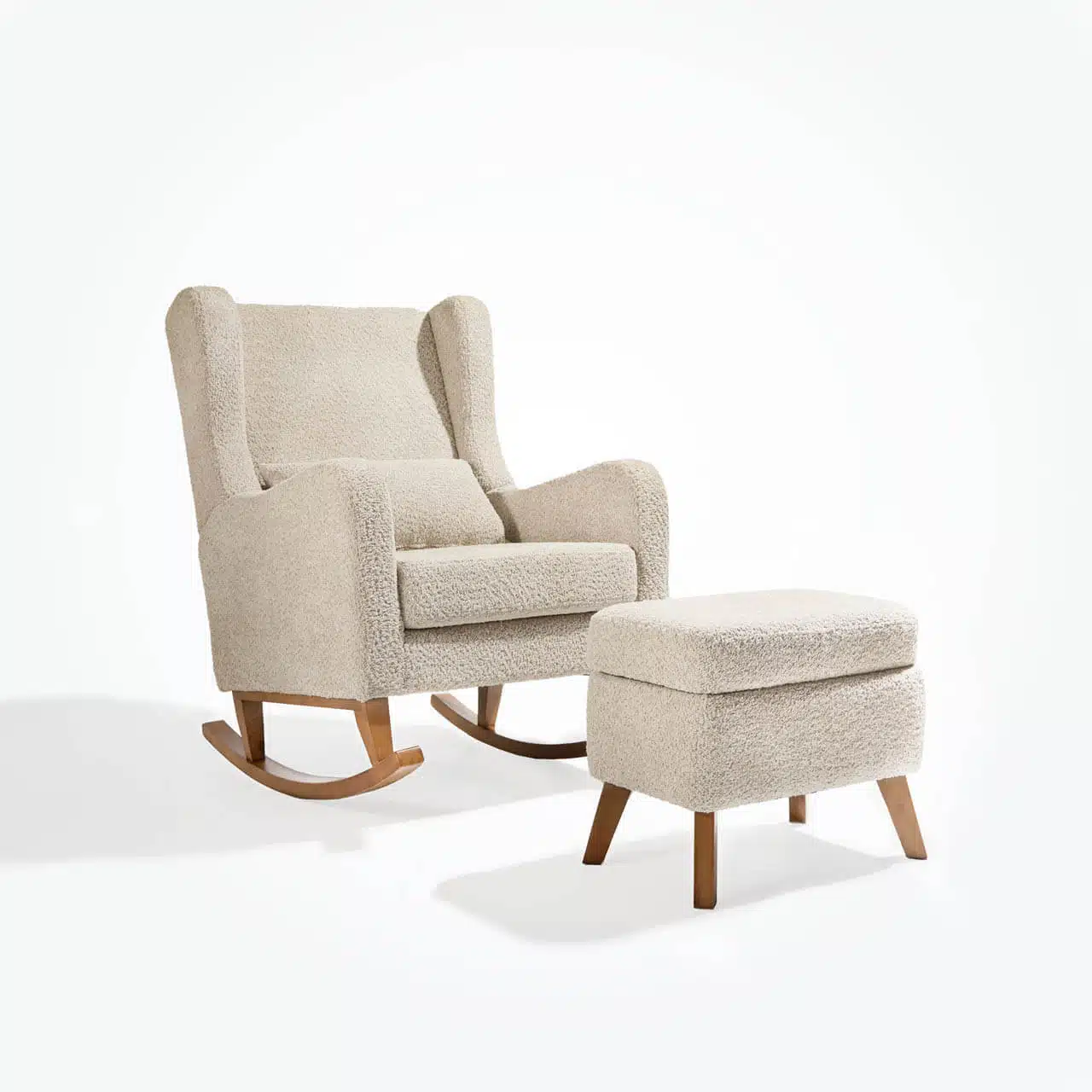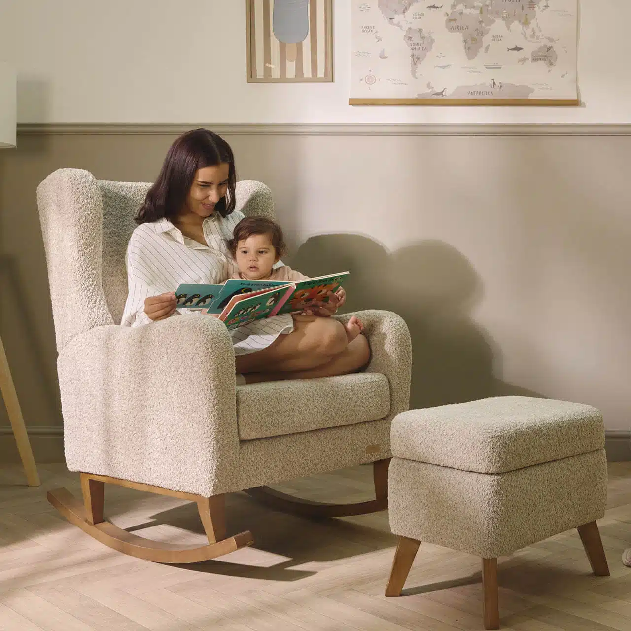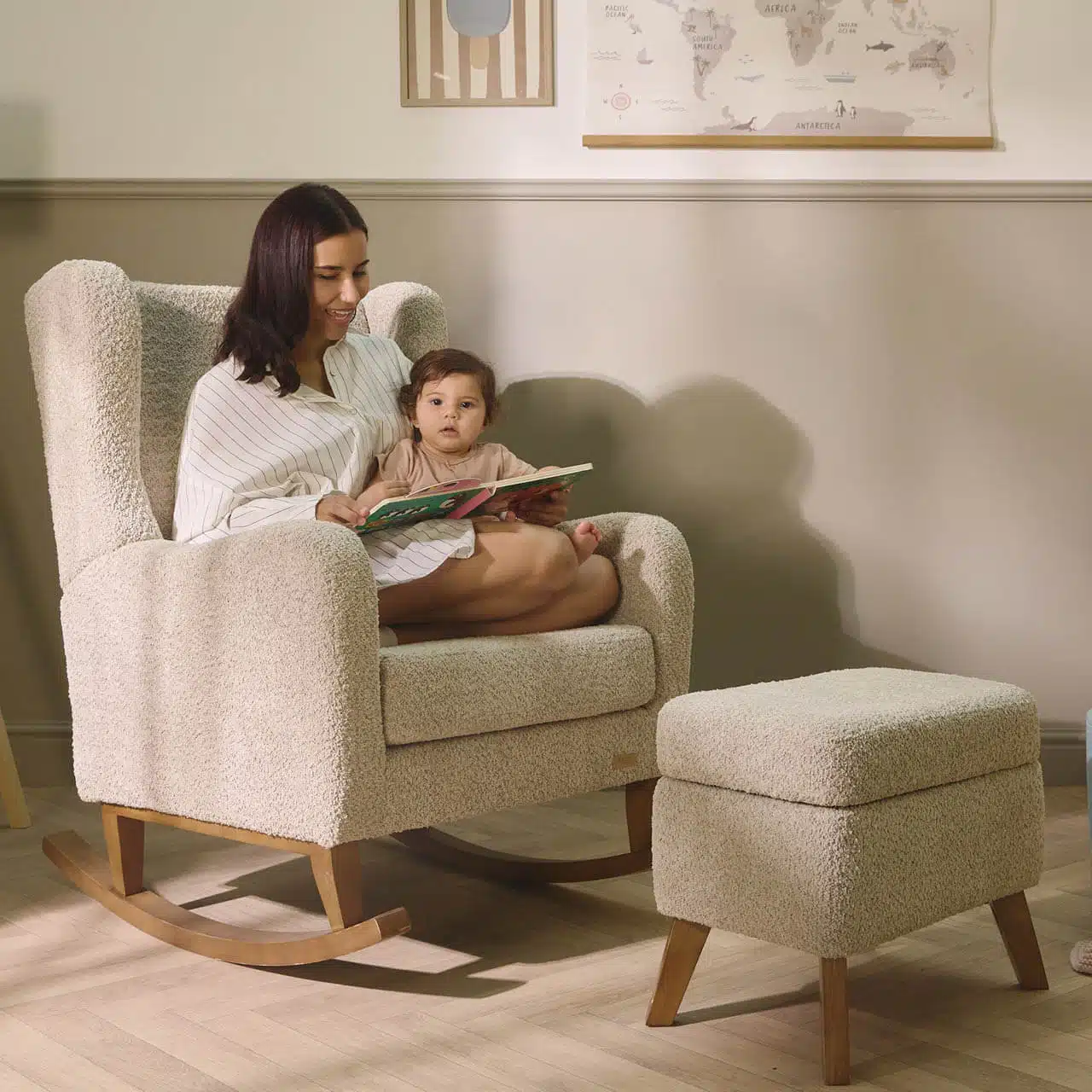 The Tutti Bambini Harper Wingback Rocking Chair & Footstool in Teddy Mushroom is more than just nursery seating—it’s a beautiful, practical retreat designed for moments of calm, comfort, and connection.