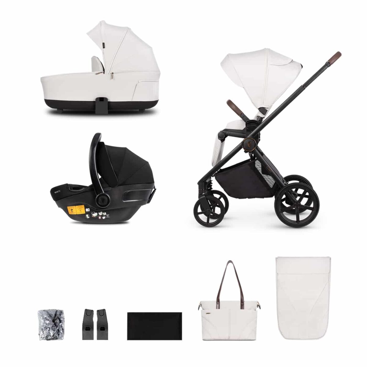 The Venicci Claro 3-in-1 Travel System with Pushchair, Carrycot & Engo Car Seat is a pram for parents who want to steer clear of the urban hustle with ease. See how agile and maneuverable a baby pram can be and experience a new way of travelling.