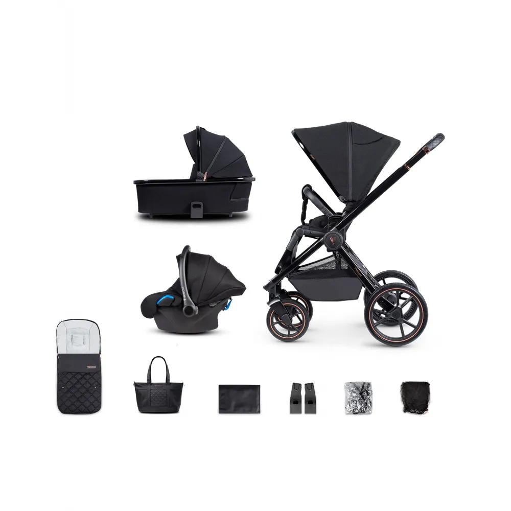 Venicci Tinum Special Edition 3 in 1 Travel System – Stylish Black (10 Piece Bundle)