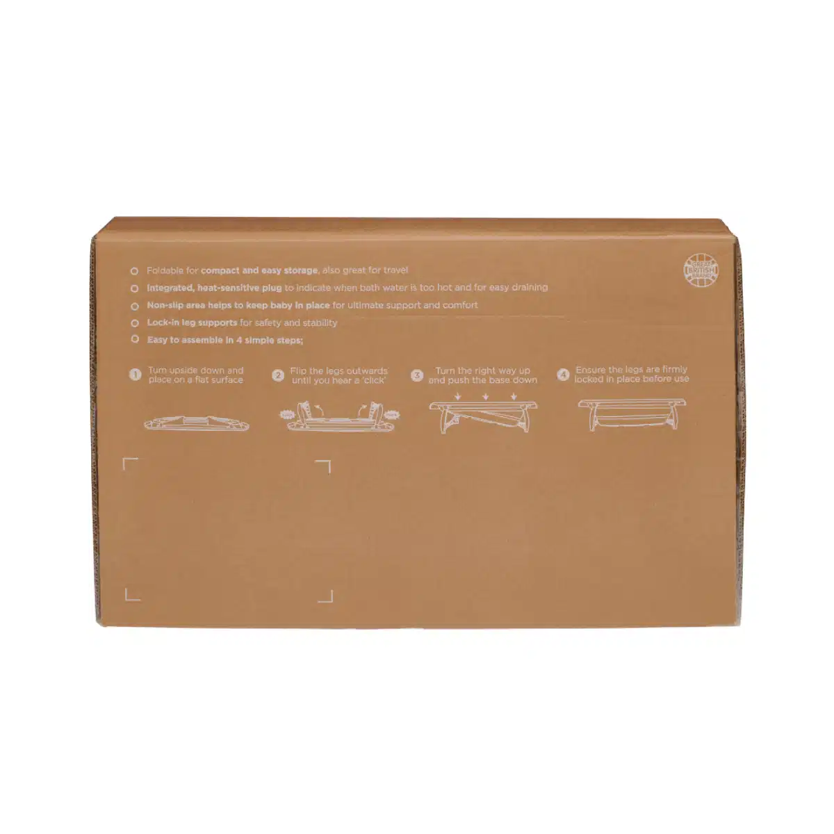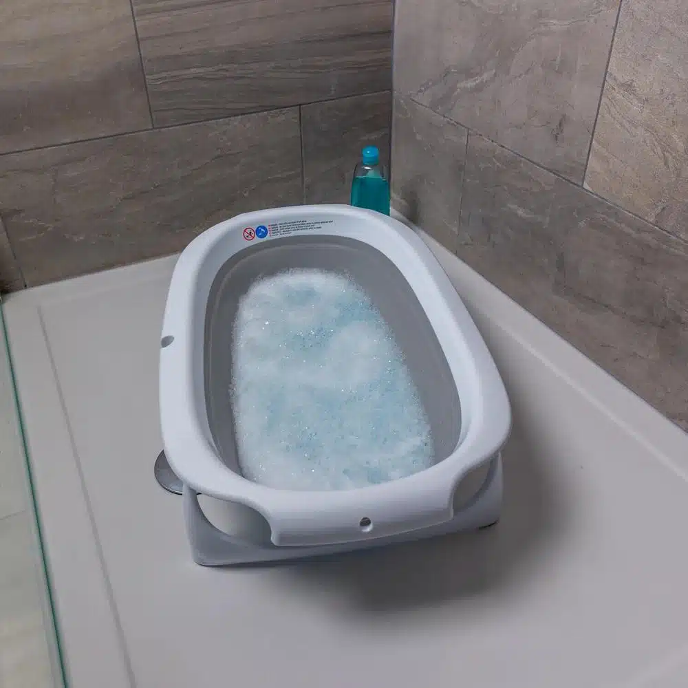 Its secure lock-in legs provide exceptional stability, ensuring a safe, worry-free bathing experience. When bath time is over, the compact design folds flat for easy storage, making it ideal for smaller bathrooms or travel.