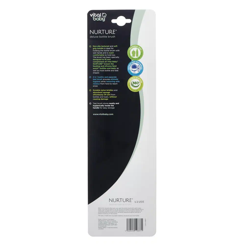 The Vital Baby Nurture Deluxe Bottle Brush is the go-to tool for safe, efficient bottle cleaning. With a hygienic 2-in-1 design, non-scratch bristles, and eco-friendly materials, it ensures bottles and teats stay spotless and safe for baby.