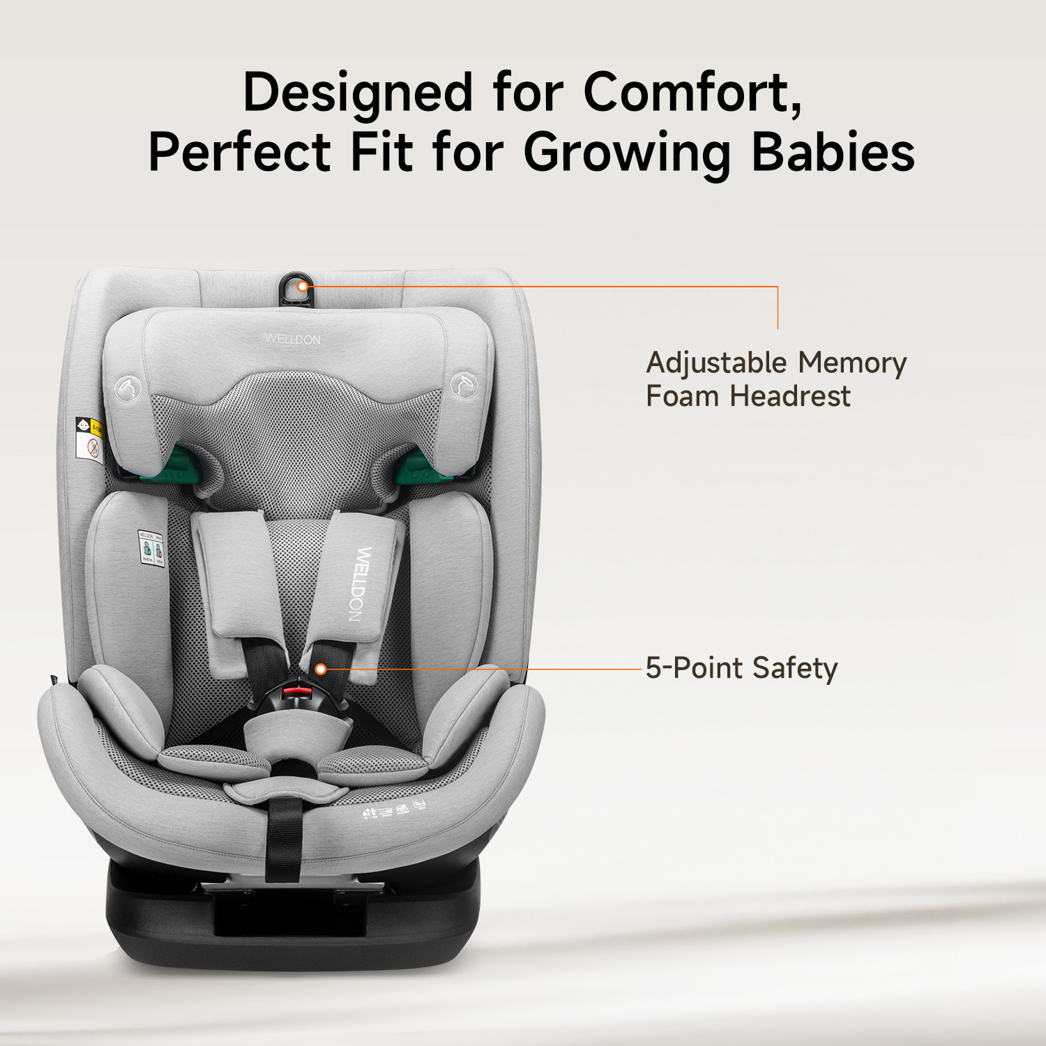 Introducing the Welldon Encore Pro in sophisticated Moonstone – a premium forward-facing car seat designed to support your child from toddler to pre-teen. Blending timeless aesthetics with advanced safety and comfort features, this all-in-one seat grows with your child while delivering everyday ease and elegance.